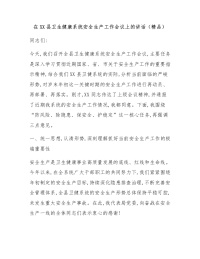 在XX县卫生健康系统安全生产工作会议上的讲话(精品)