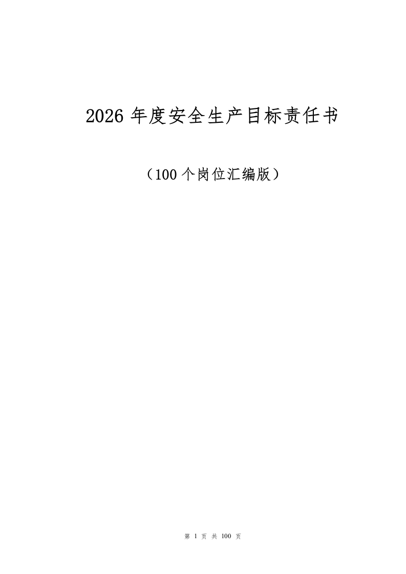 首页安全文档综合2026年安全生产目标责任书层层签订