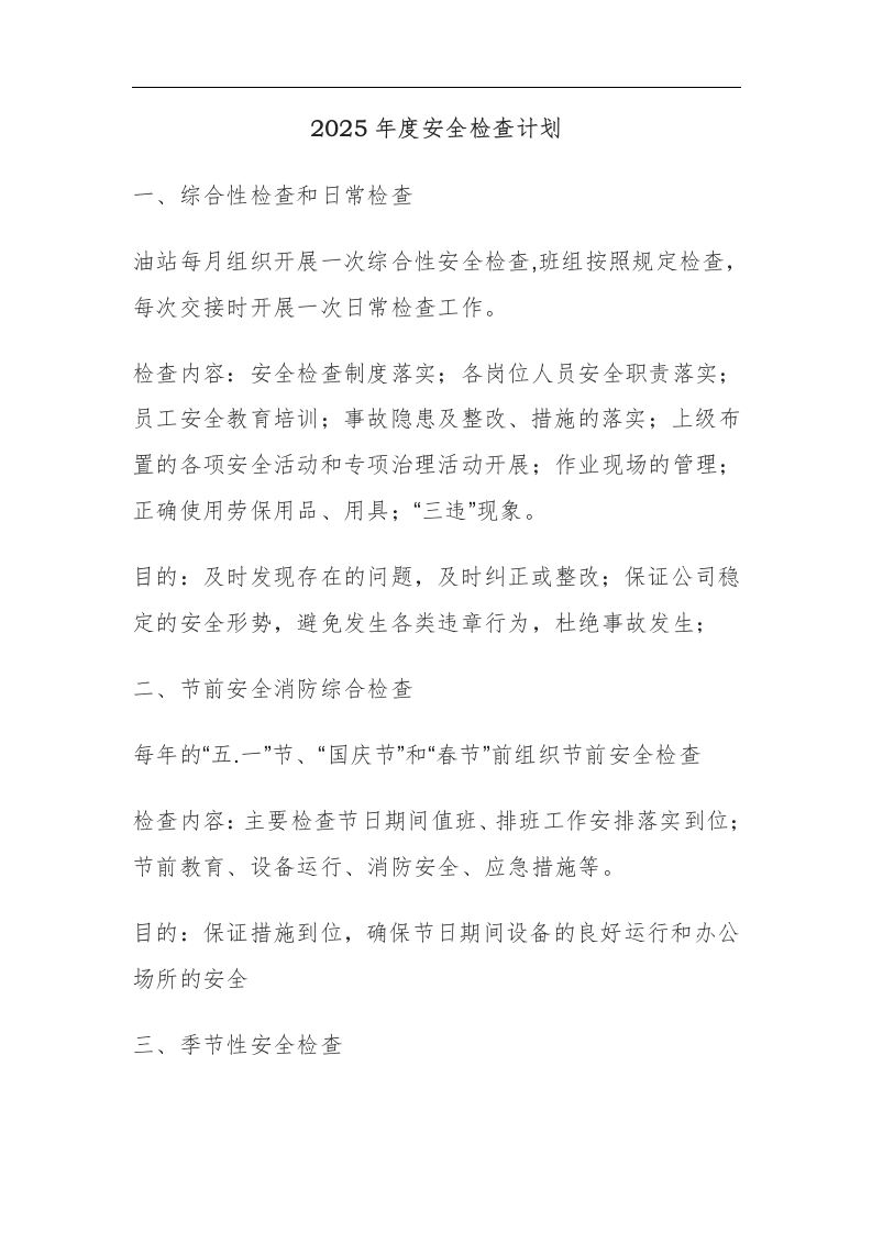 【计划】2025年度安全检查计划