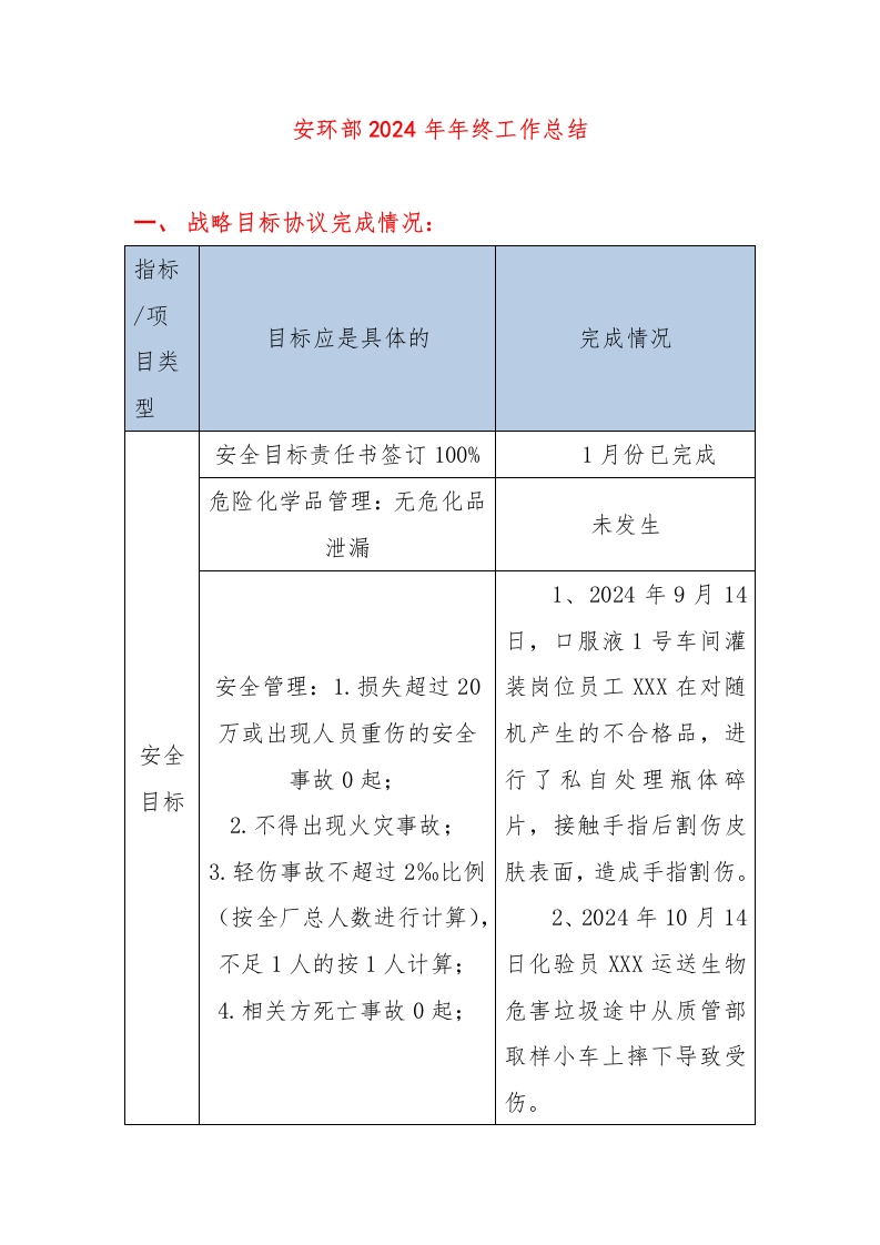 【文档】XX企业安环部2024年工作总结(8页)