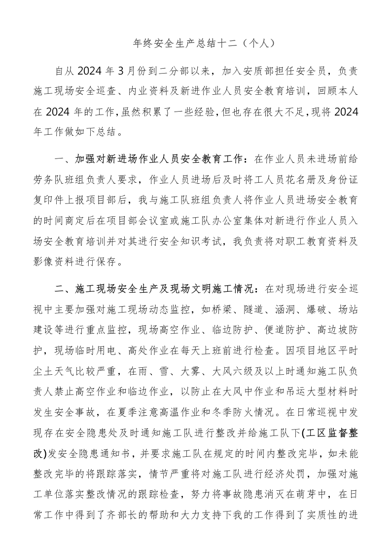 【总结】年终安全生产总结-施工项目版