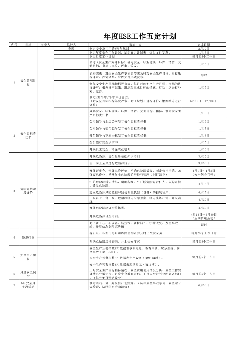 【计划】2026安全环保(EHS)年度工作计划表