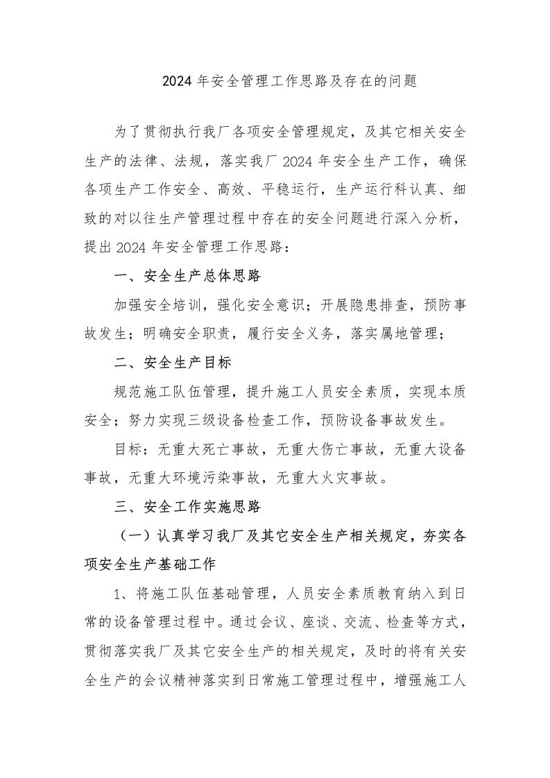 XX厂区安全生产工作思路(5页)