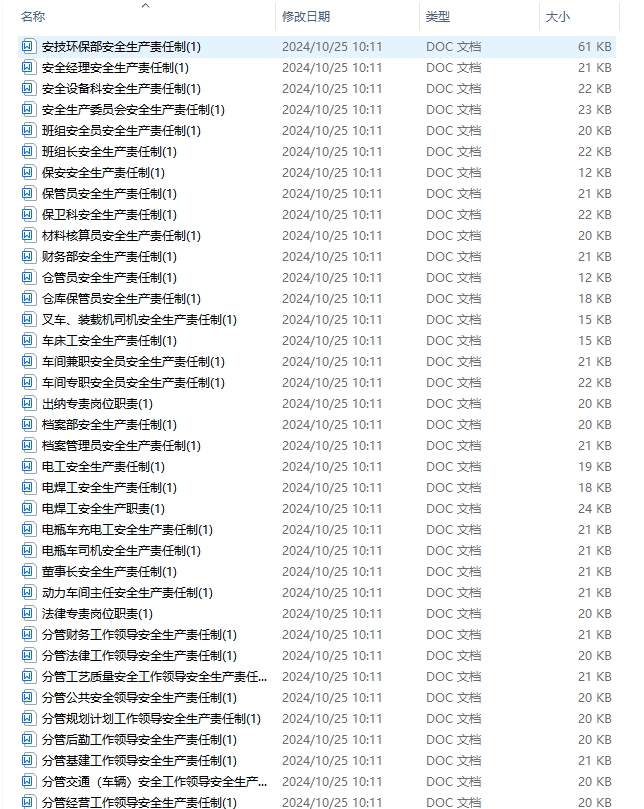 【合集】1000份各行业各岗位安全责任制清单文件整理汇总