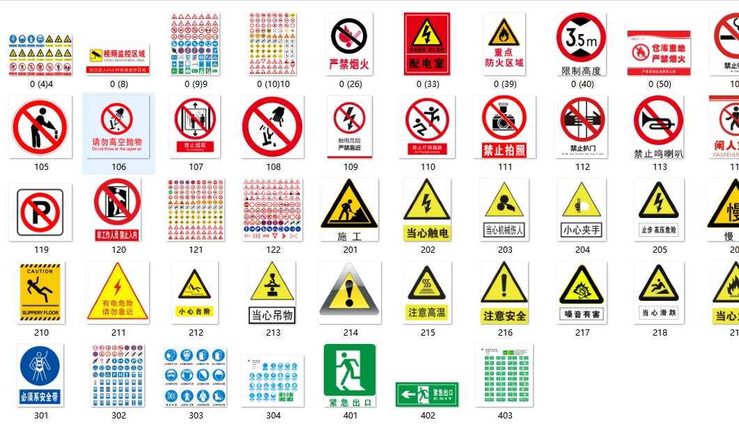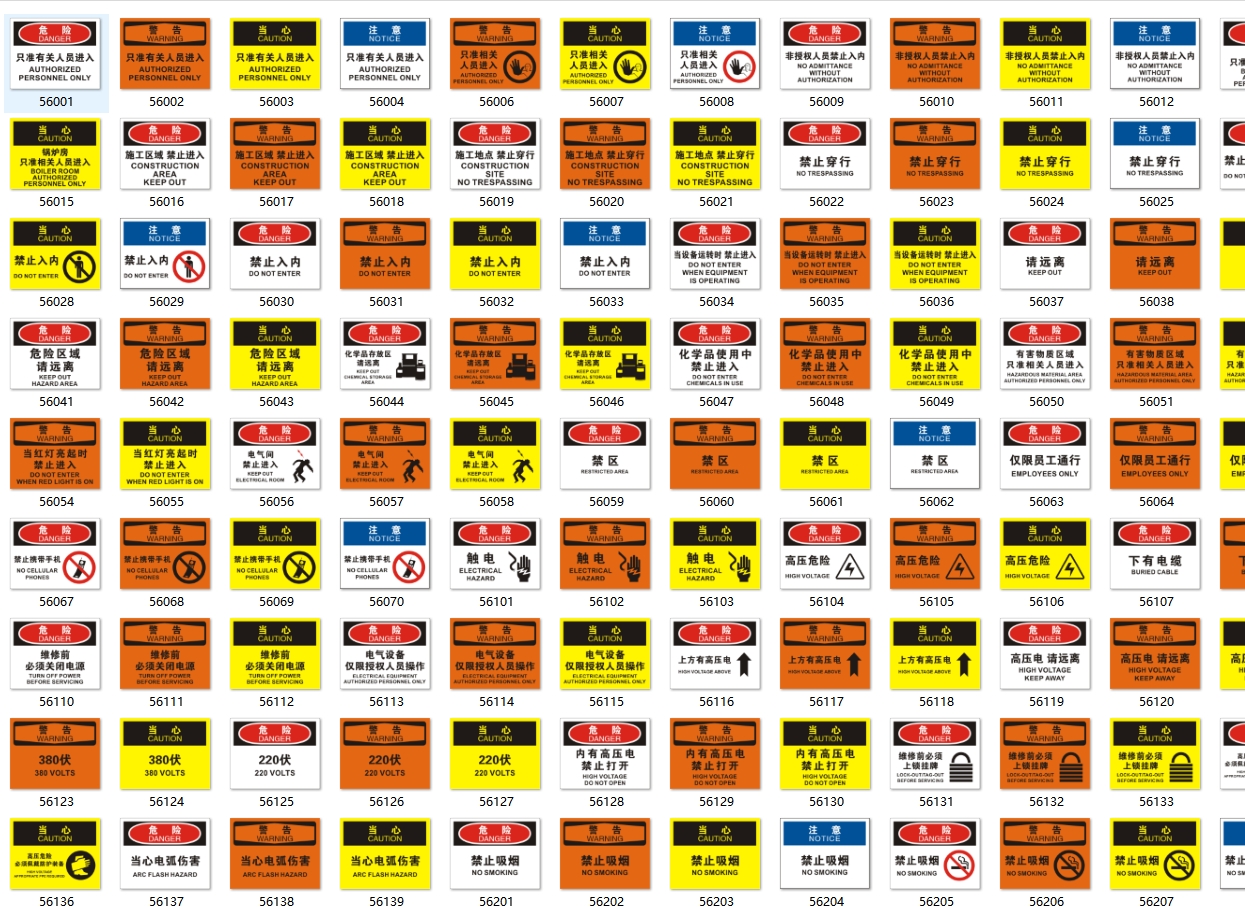 安全标识牌警示警告消防标志工厂仓库生产车间严禁烟火禁止吸烟当心触电有电危险工地施工提示矢量图